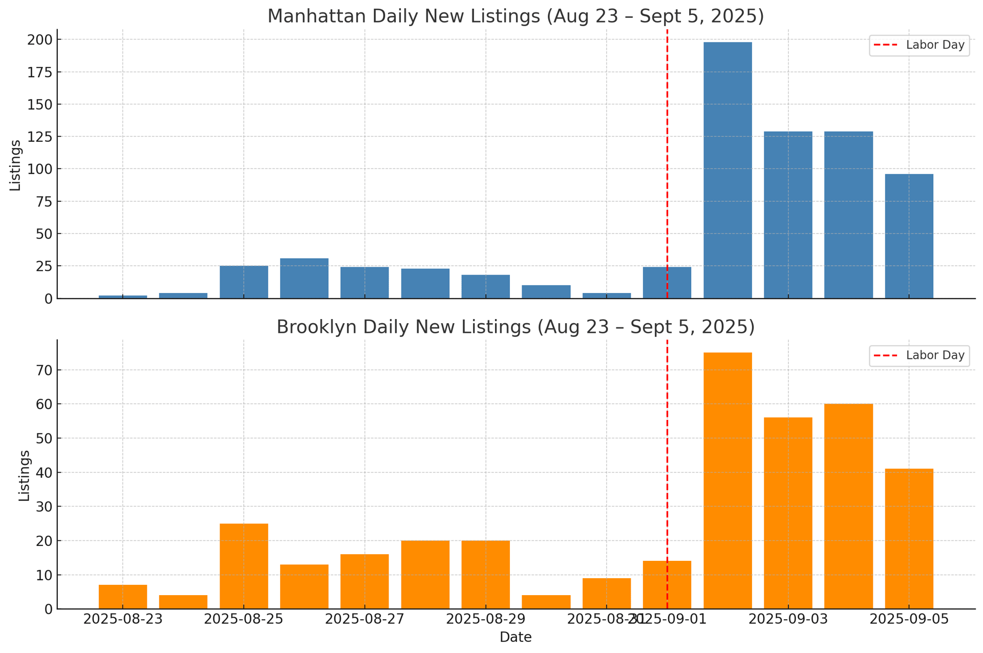 Manhattan (Sept 1–5): 574 listings total (~115/day) ~7x prior 8 day daily average
